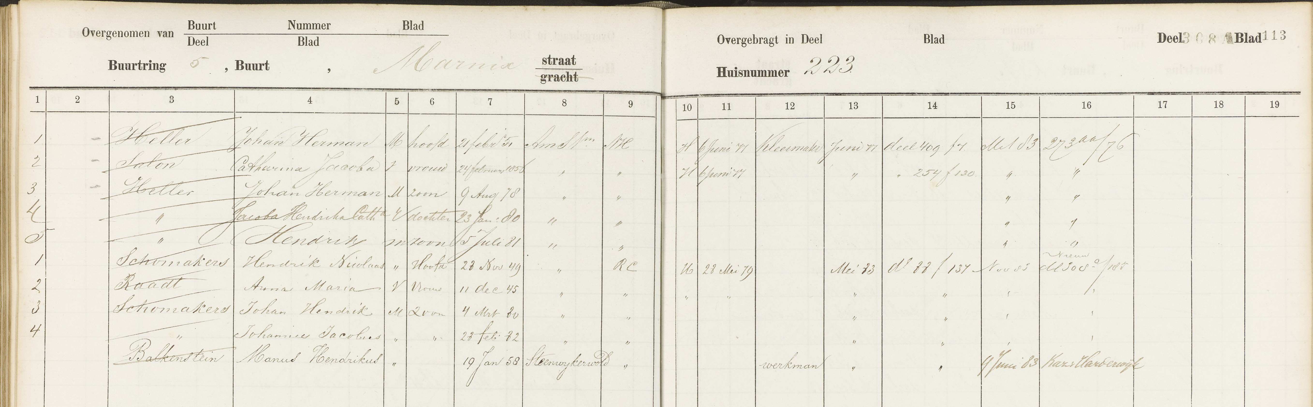 Jacoba Hendrika Catharina Heller, geb. te Amsterdam op 23 jan 1880, Nederlands Hervormd, Dienstbode, adres: Jacob van Lennepstraat 87 Amsterdam tussen mrt 1883 en okt 1883, adres: Marnixstraat 223 Amsterdam tot mrt 1883, adres: Marnixstraat 13 Amsterdam tussen okt 1883 en nov 1883, adres: Bloemgracht 181 Amsterdam van sep 1884 tot jun 1890, adres: Marnixstraat 173 Amsterdam tot sep 1884, adres: Bloemstraat 99 Amsterdam vanaf sep 1890, adres: Da Costakade 75 Amsterdam in 1893. |