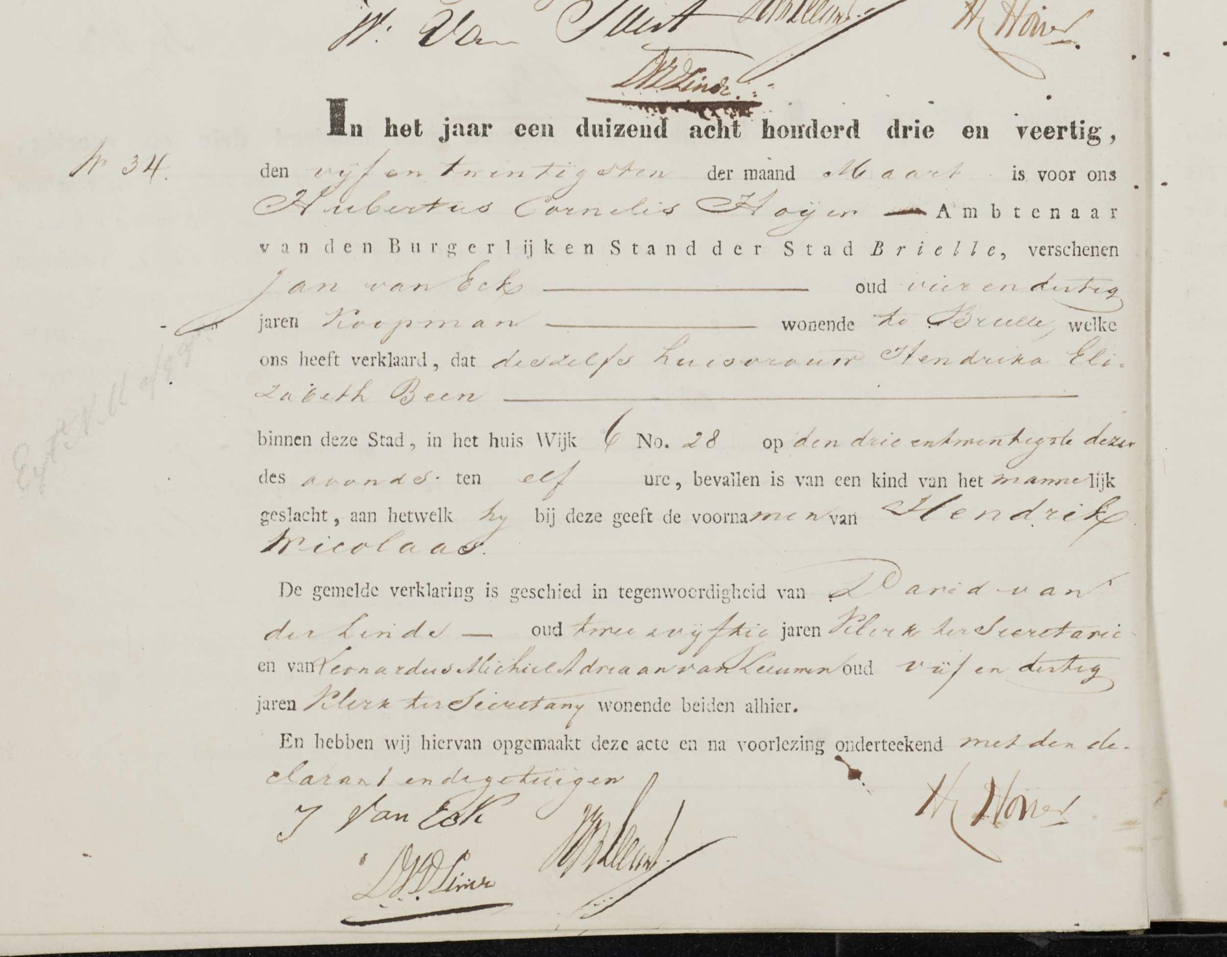 | WIE22815665. | Geboorte Hendrik Nicolaas van Eck, Archiefnaam: Streekarchief Voorne-Putten, Archief: 084, Deel/Akte: 34, Inventarisnr.: 251, Bron plaats: Brielle, Bron datum: 23 mrt 1843, Bron type: BS Geboorte, URL: https://www.wiewaswie.nl/nl/detail/22815665 (WIE22815665) |