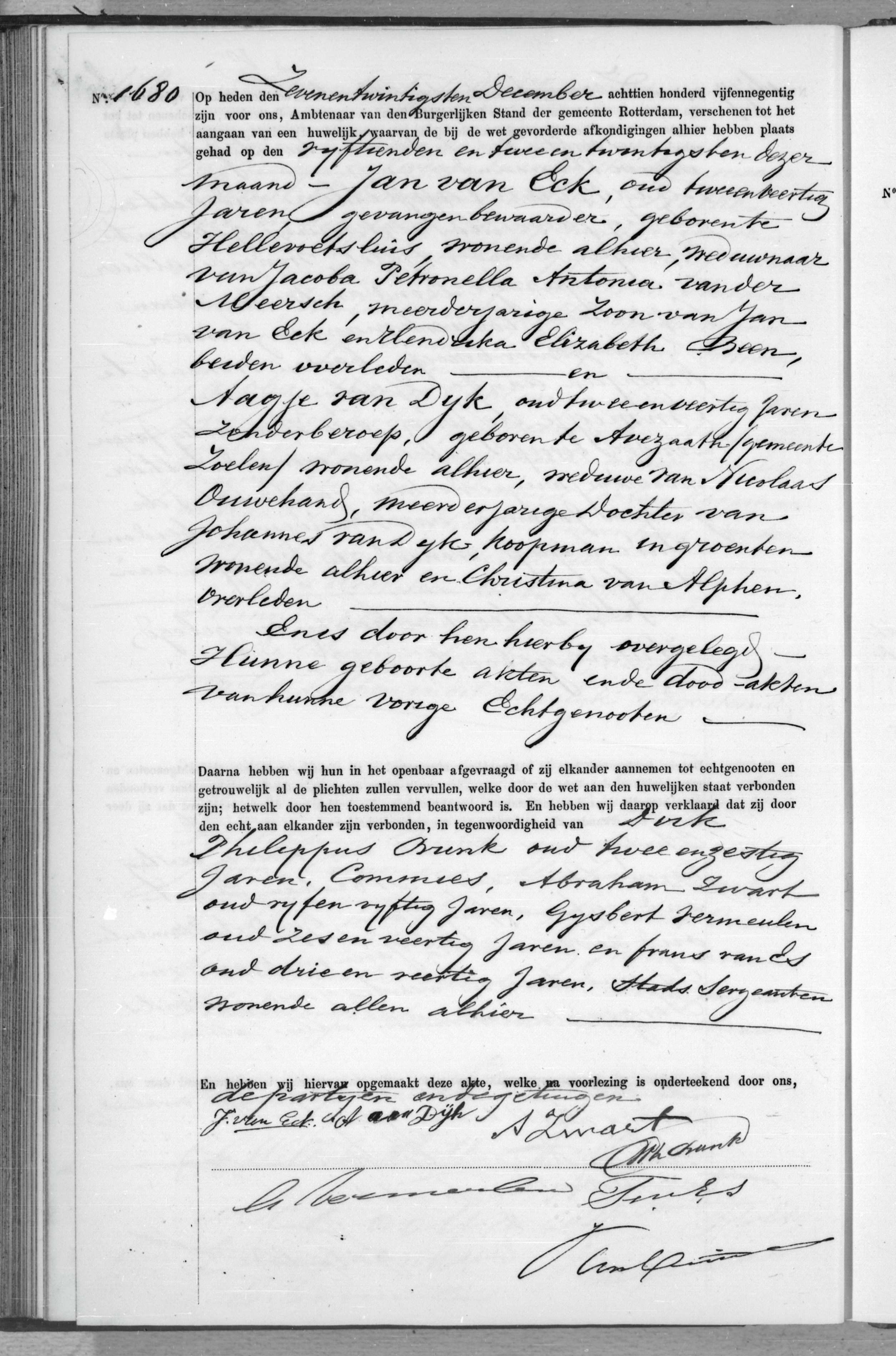 tr. (resp. 36 en 34 jaar oud) te Rotterdam op 16 aug 1876 (Huwelijk Arij Hendrik van Eck 16 aug 1876)