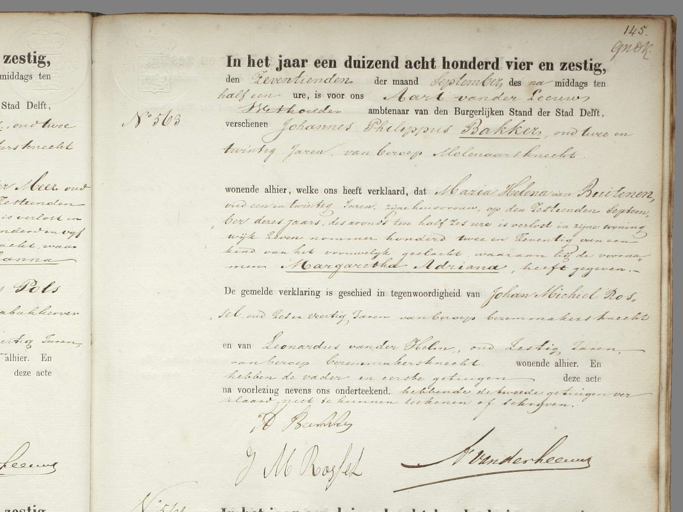geb. te Delft (Huwelijk Gerrit Bakker met Maria Johanna Willemina Sigon 9 sep 1863).