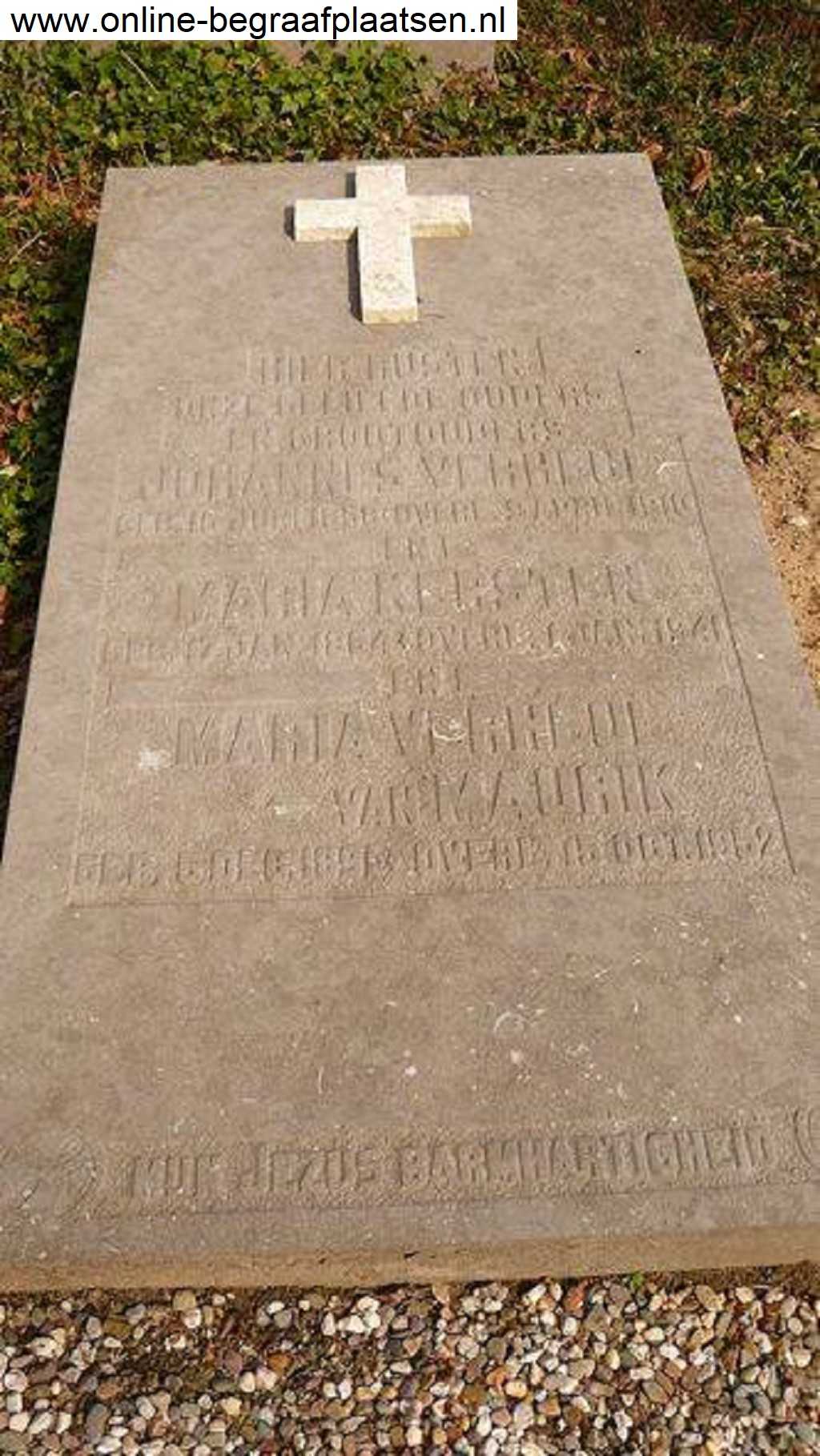 | Maria (Huwelijk Johannes Verheul 25 nov 1886,Geboorte Maria Kersten 18 jan 1864) Kersten (Huwelijk Johannes Verheul 25 nov 1886,Geboorte Maria Kersten 18 jan 1864), geb. te Utrecht op 17 jan 1864 (Geboorte Maria Kersten 18 jan 1864), adres: Zonstraat No.7 Utrecht in 1880, ovl. (76 jaar oud) op 2 jan 1941, begr. aldaar RK Begraafplaats St. Barbara, Prinsesselaan 2. |